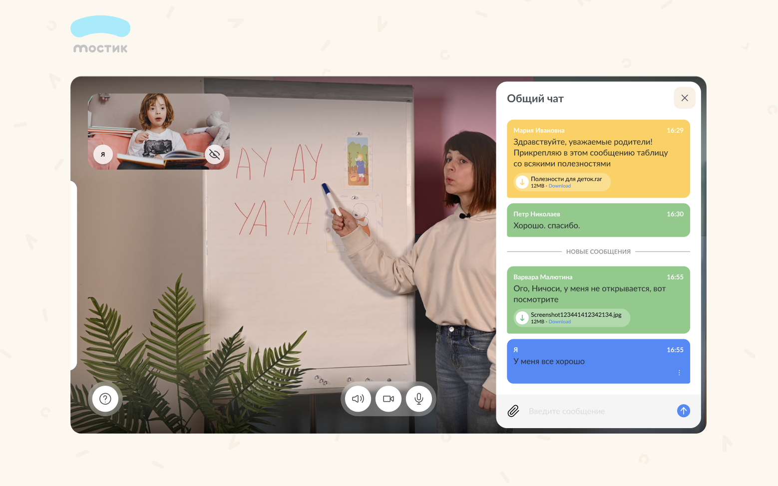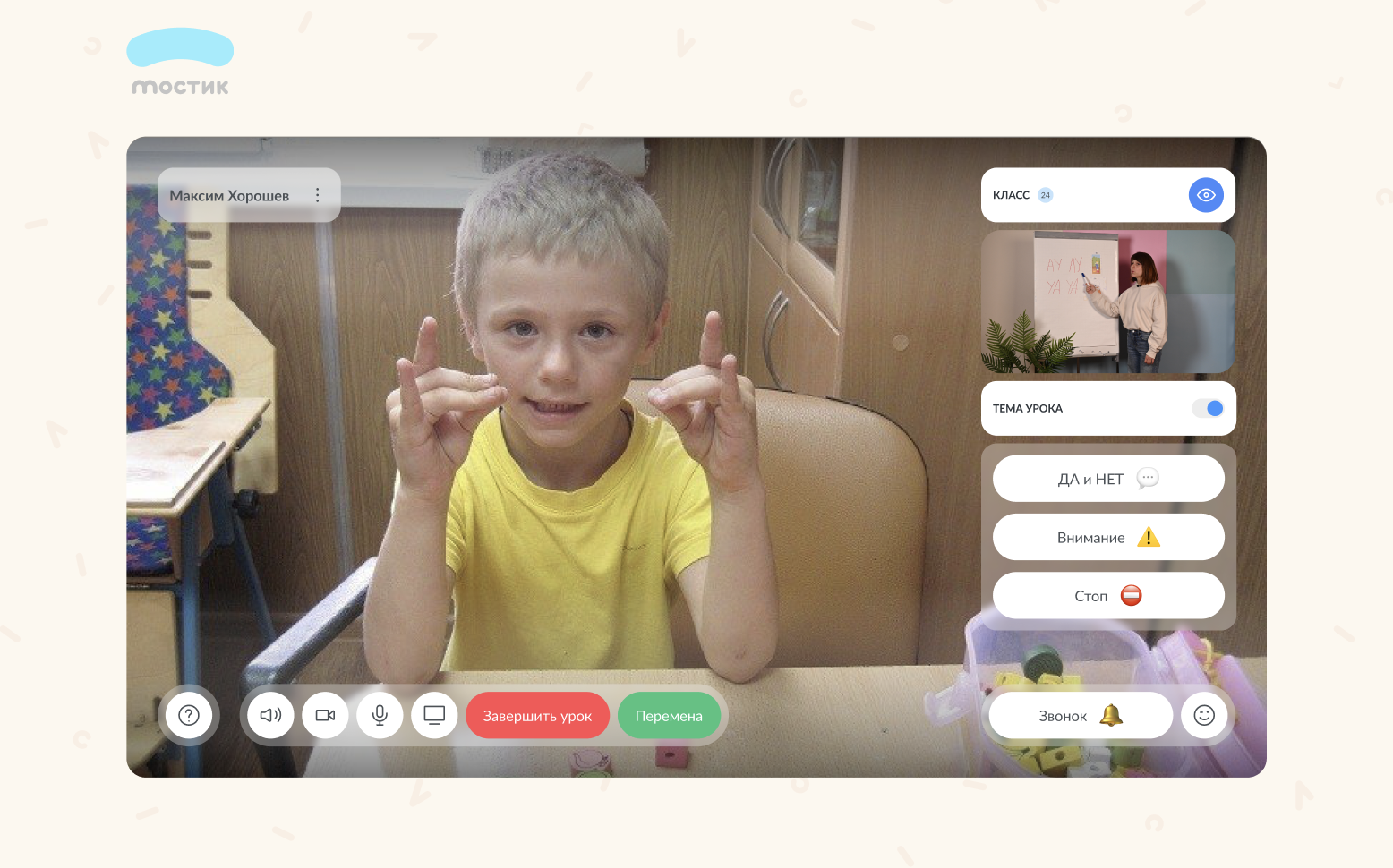 Первым делом вы получаете доступ к нашей интерактивной платформе. Мы разработали её специально для обучения особых детей, и на ней мы проводим все консультации, индивидуальные и групповые уроки.